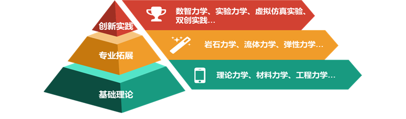 ②“力学赋能”交叉融合:与矿冶学科群深度融合、相互支撑,主动、系统地融入矿冶行业基础学科人才培养全过程。将人才培养的起点从满足当前岗位技能前移至基础创新,激发力学基础理论驱动前沿创新。