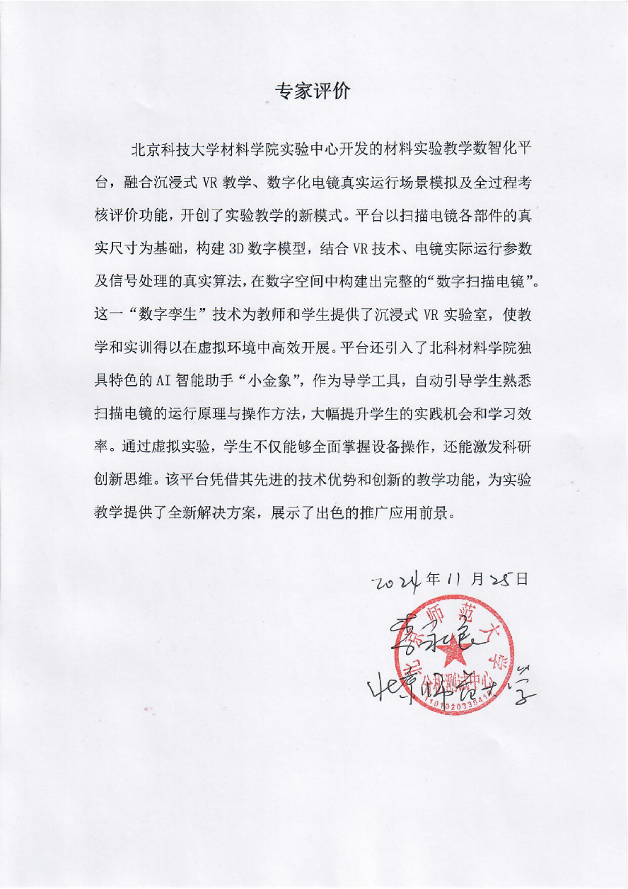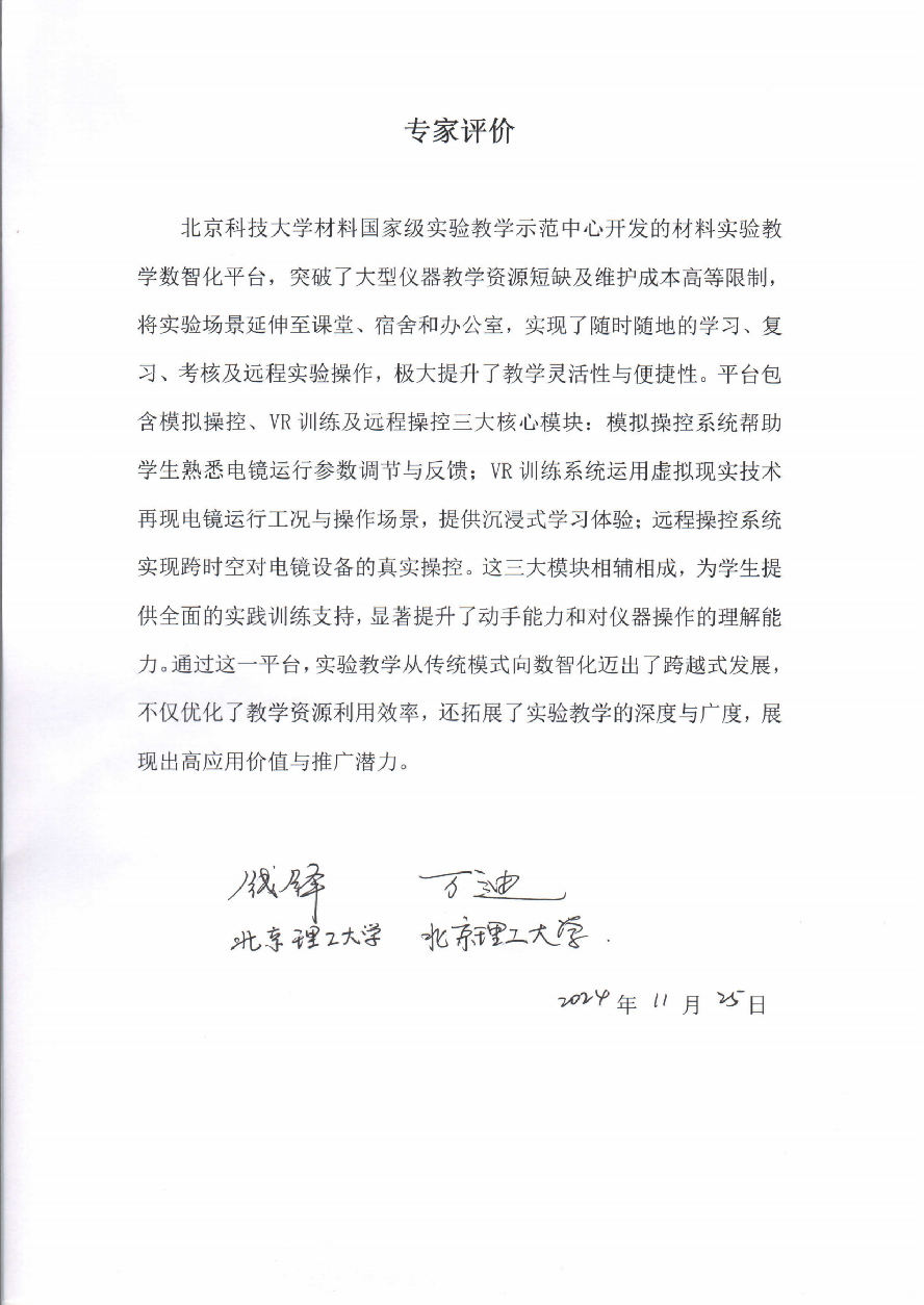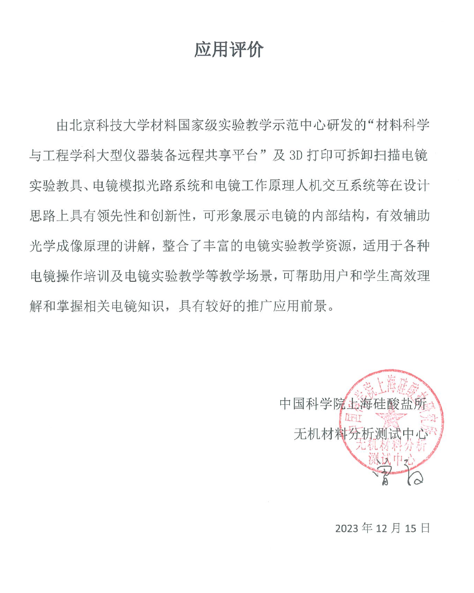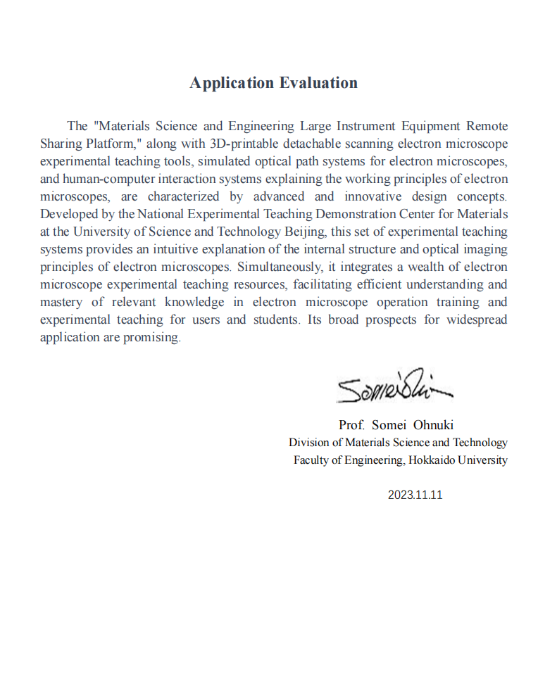 德国蔡司、徕卡、英国牛津仪器、日本日立等国际知名电镜厂商均对成果给予了高度评价。蔡司认为“非常新颖、极具创新性”,并提供了多项无偿技术支持;牛津仪器认为成果“为用户提供贴近实际的学习体验,展现出巨大的应用价值和推广潜力”。世界著名电镜专家、日本工程院院士Ohnuki教授指出,该系统“具有先进、革新的设计理念,能直观解析结构与成像原理,促进高效学习”。目前,已有日本东北大学、德国科隆大学、亚琛工业大学、英国邓迪大学等14所国际高校专家学者来校参观交流。