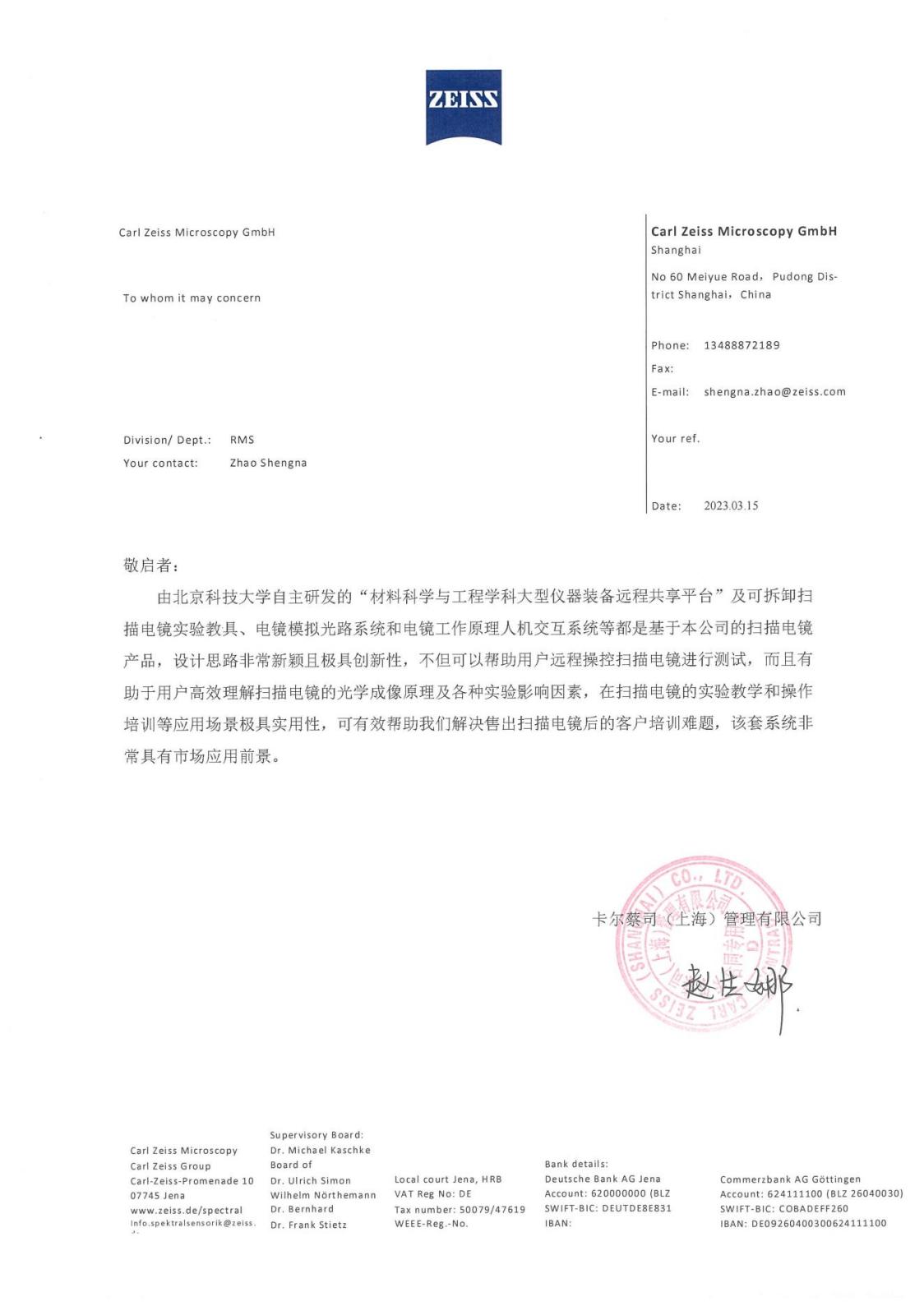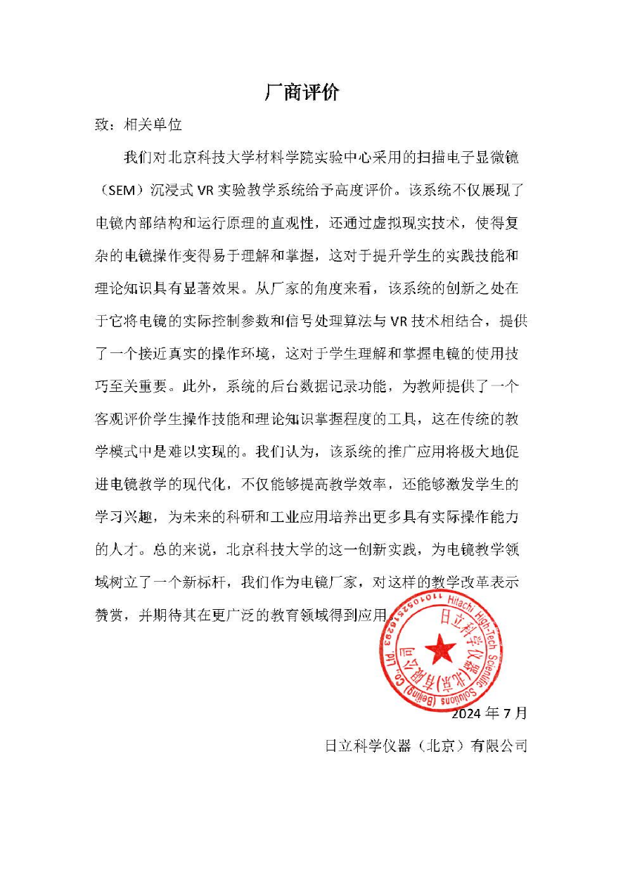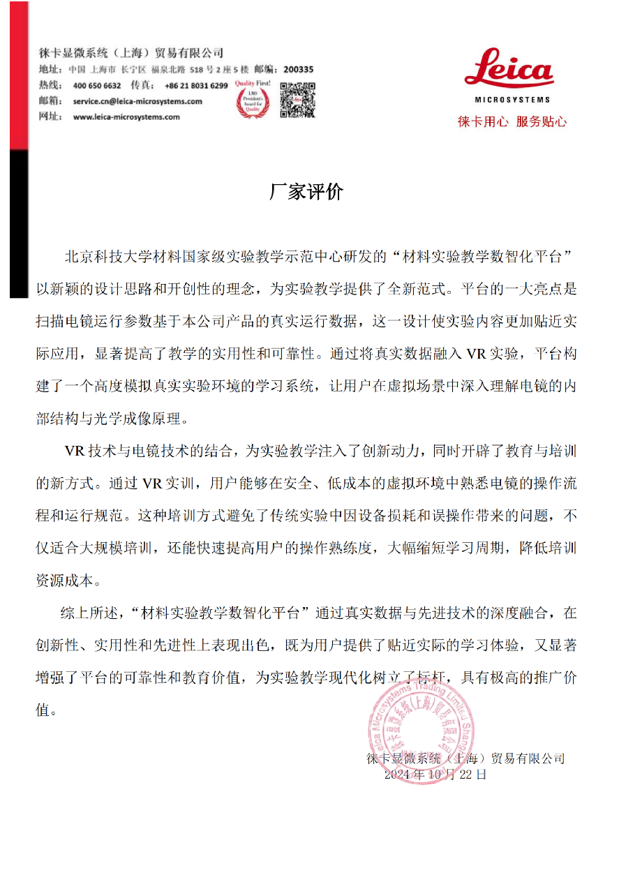 德国蔡司、徕卡、英国牛津仪器、日本日立等国际知名电镜厂商均对成果给予了高度评价。蔡司认为“非常新颖、极具创新性”,并提供了多项无偿技术支持;牛津仪器认为成果“为用户提供贴近实际的学习体验,展现出巨大的应用价值和推广潜力”。世界著名电镜专家、日本工程院院士Ohnuki教授指出,该系统“具有先进、革新的设计理念,能直观解析结构与成像原理,促进高效学习”。目前,已有日本东北大学、德国科隆大学、亚琛工业大学、英国邓迪大学等14所国际高校专家学者来校参观交流。