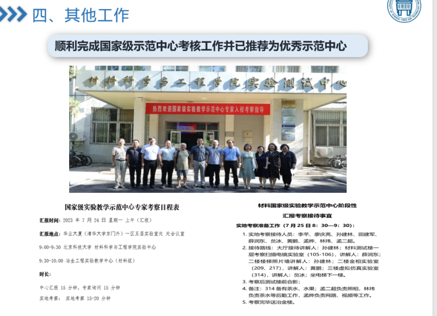 北京科技大学材料国家级实验教学示范中心2023年顺利完成国家级实验教学示范中心考核工作并被推荐为示范中心案例。