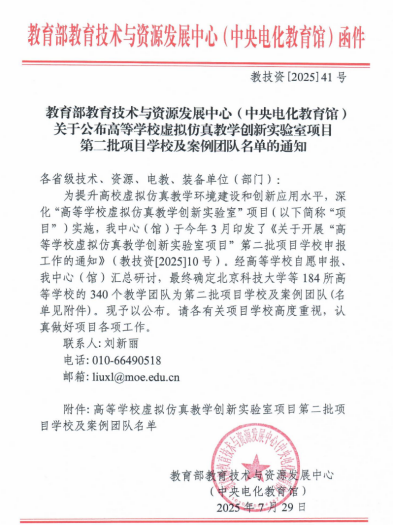 2025年7月,北京科技大学材料虚拟仿真数智化实验室入选高等学校虚拟仿真教学创新实验室项目第二批名单。
