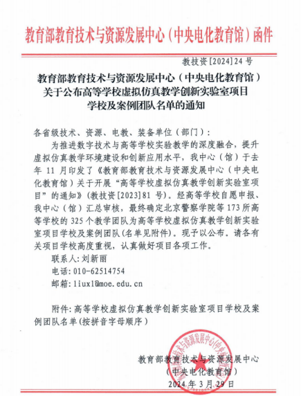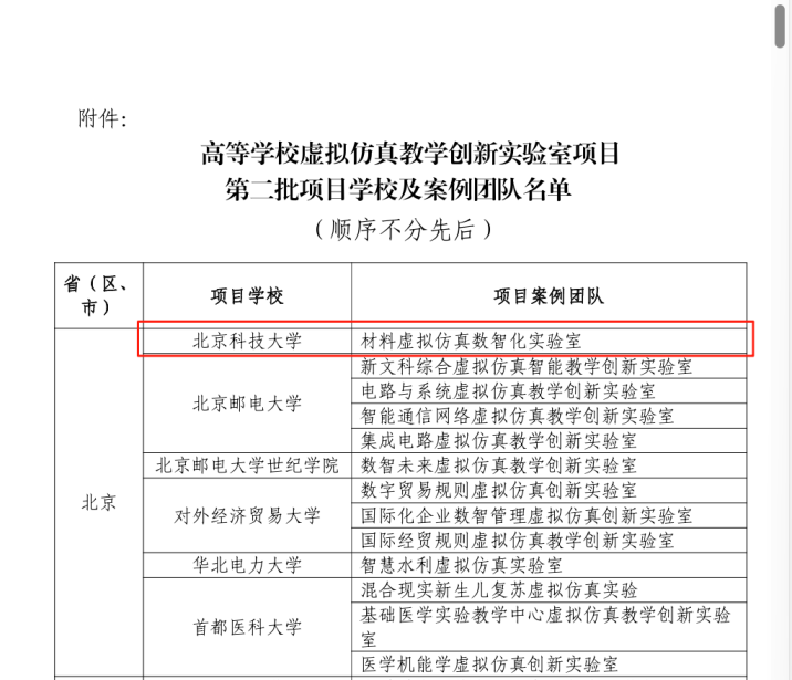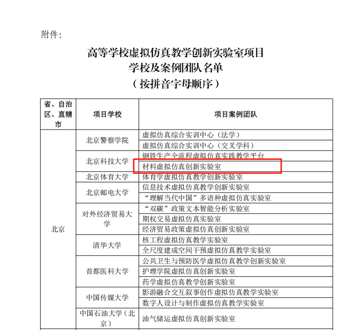 2024年3月,北京科技大学材料虚拟仿真创新实验室入选高等学校虚拟仿真教学创新实验室项目第一批名单。