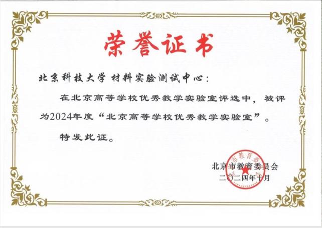 北京科技大学材料实验测试中心在北京高等学校优秀教学实验室评选中,被评为2024年度“北京高等学校优秀教学实验室”。