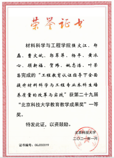 《工程认证指导下全面提升材料科学与工程专业本科生 培养质量的改革与实践》 |