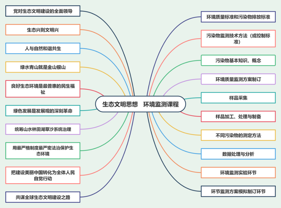 《环境监测》是环境工程专业重要的主干课程,通过对影响环境质量因素代表值的测定,确定环境质量及其变化趋势,从而为环境管理、环境经济、环境技术和生态保护的法律法规政策等提供技术依据,其课程特点是基础性强、时代感强、实践性强。环境监测又是生态环境保护的重要支撑和手段之一,蕴含了丰富的思政元素,是开展课程思政、提升学生生态文明意识、引导其牢固树立社会主义生态文明观的优质课堂(图1)。