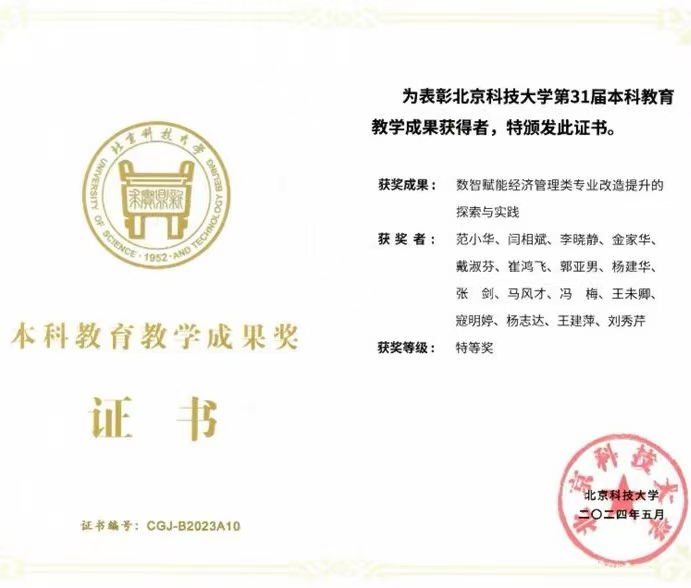 学院以改革创新为牵引推动专业优化,数智赋能经管类专业持续改造升级,专业数智化特色凸显。2017年以来,学院获批与“四新”建设和专业优化相关的教育部“产学合作协同育人项目”14项、校级本科教改各类项目28项;2019年,学院开展的协同育人模式改革获北京市立项;2021年,学院申报的教育部首批新文科研究与改革实践项目成功获批并在三年后结题验收中获评“优秀”。2017年以来,学院产生国家级一流本科专业建设点5个,北京市一流本科专业建设点2个,国家级一流本科课程5门,教育部课程思政示范课1门、北京市优质本科课程3门、高校优质本科教材4本,11人次获省部级及以上教学人才称号。大数据管理与应用专业实现专业排名和毕业生满意度“双高”,软科最新排名在全国145所高校中名列第9,首届毕业生学生对教学水平和教学方法的满意度均为100%,居全校50余个专业之首。学院七个专业全国排名三年从5A2B到6A1B到7A,专业建设成果显著。