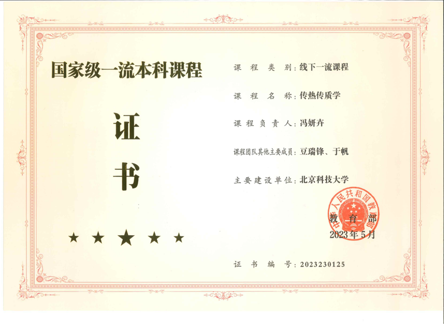 [2] 2023年,第二批国家级一流本科课程,传热传质学,线下课程