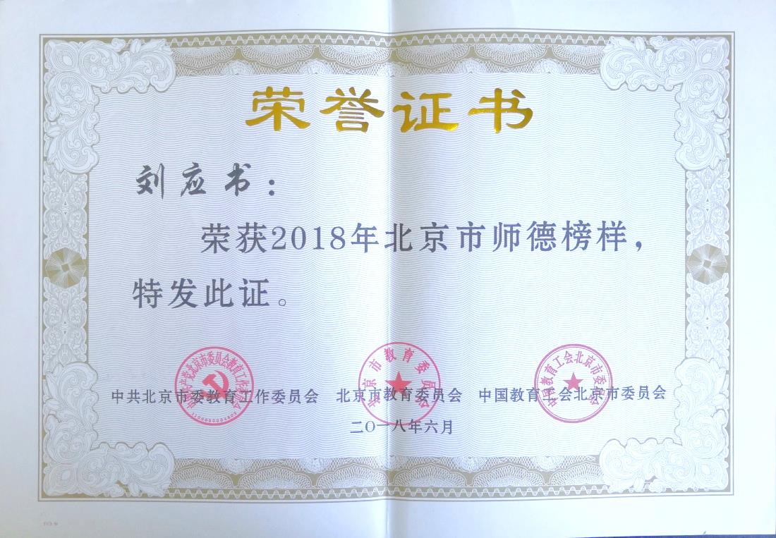 [7] 2018年,北京市师德榜样(先锋):刘应书