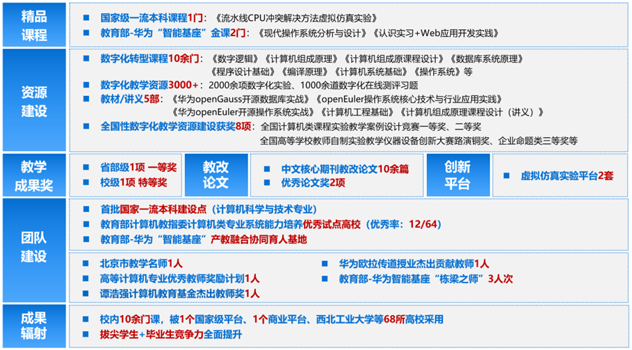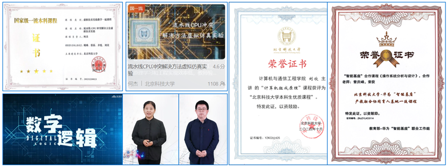 所建设的《流水线CPU冲突解决方法虚拟仿真实验》获评国家一流本科课程(已完成4期开设)。项目成果辐射10余门计算机类核心专业课程全面数字化改革,获得全国性教学案例和实验设备奖8项。