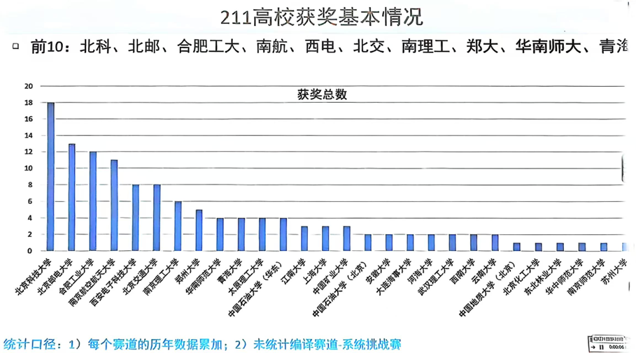 统计来自全国计算机系统能大赛组委会虚拟教研室典型示范交流会(北京站)分会场:赛教相长--以学科竞赛促进虚拟教研室建设,《计算机系统能力培养与赛事分析》,报告人:高小鹏 北京航空航天大学 教授