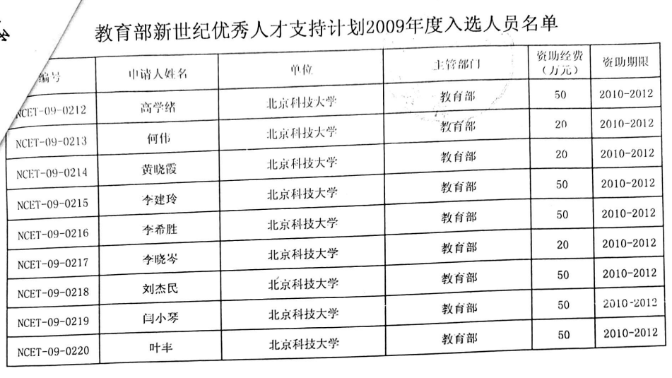 5、入选教育部“新世纪优秀人才支持计划”,2009