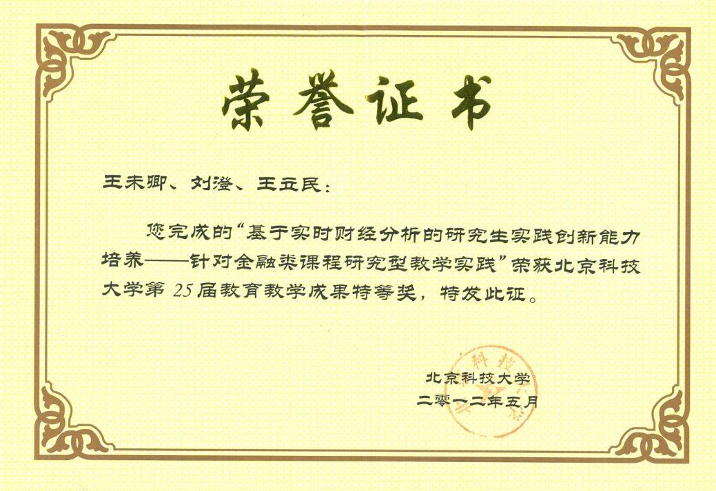 8、北京科技大学第七届“本科教学优秀奖”一等奖,2014