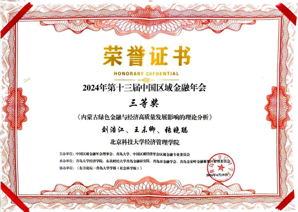 9、2024年第十三届中国区域金融年会三等奖,2024