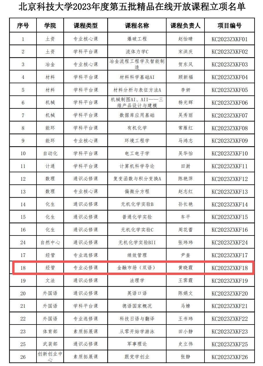 13、北京科技大学第五批精品在线开放课程立项《金融市场(双语)》,2023