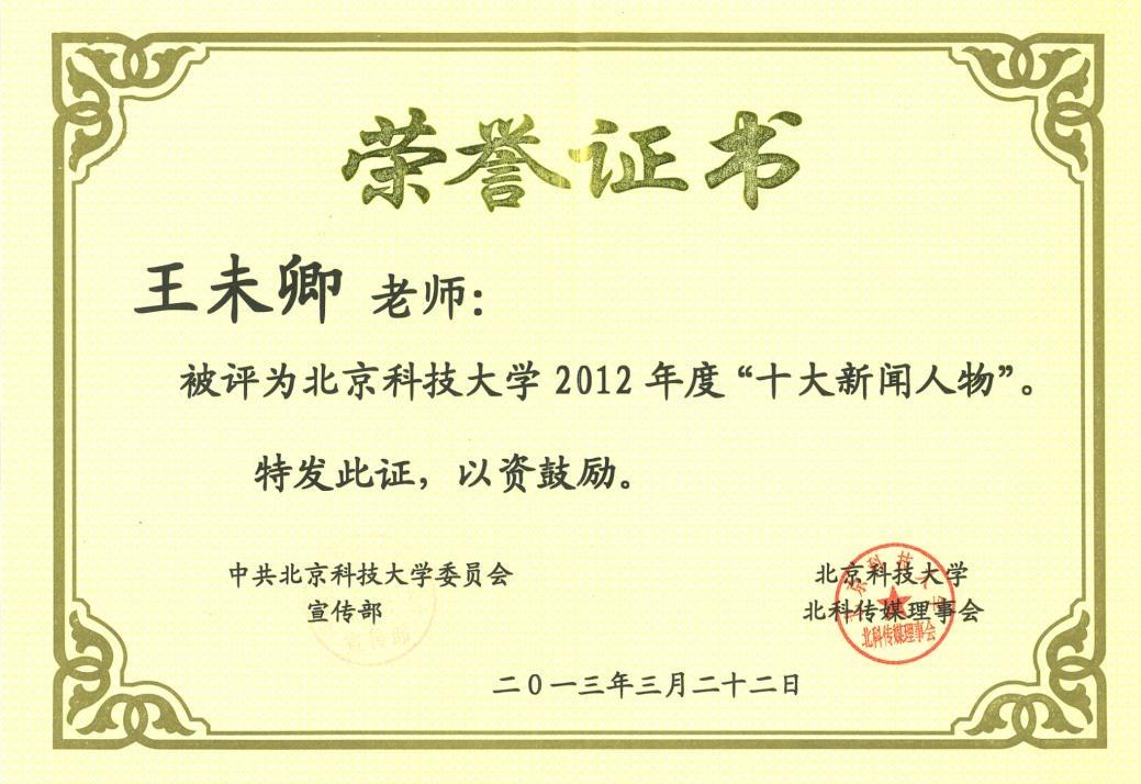 12、北京科技大学2012年度“十大新闻人物”,2012