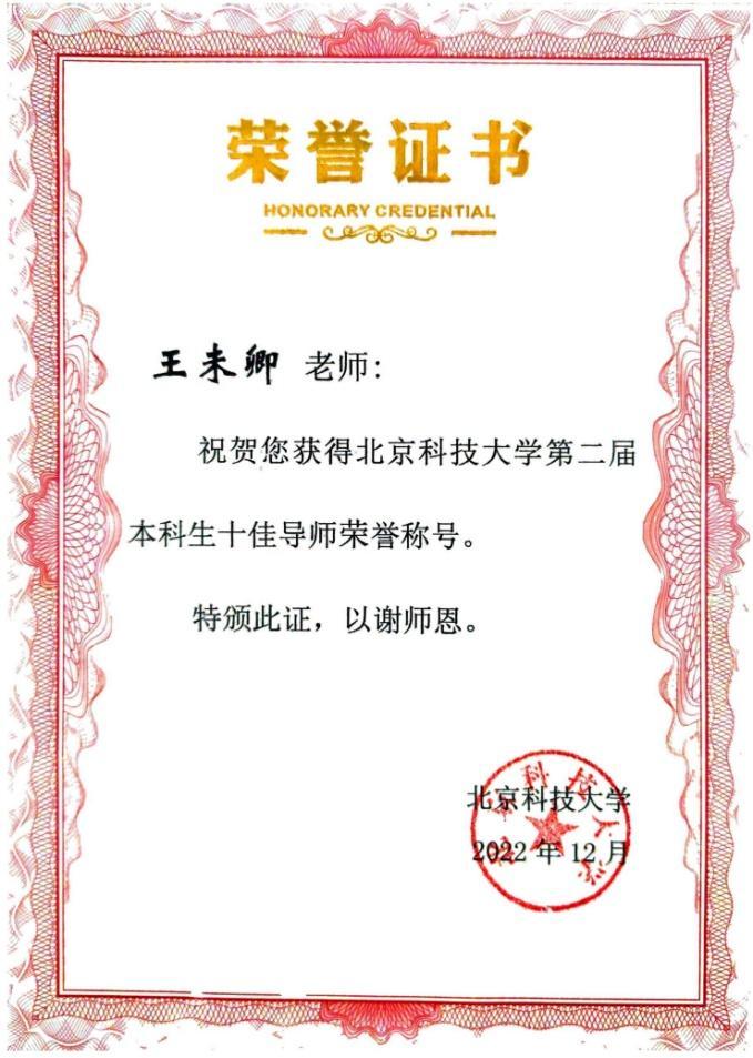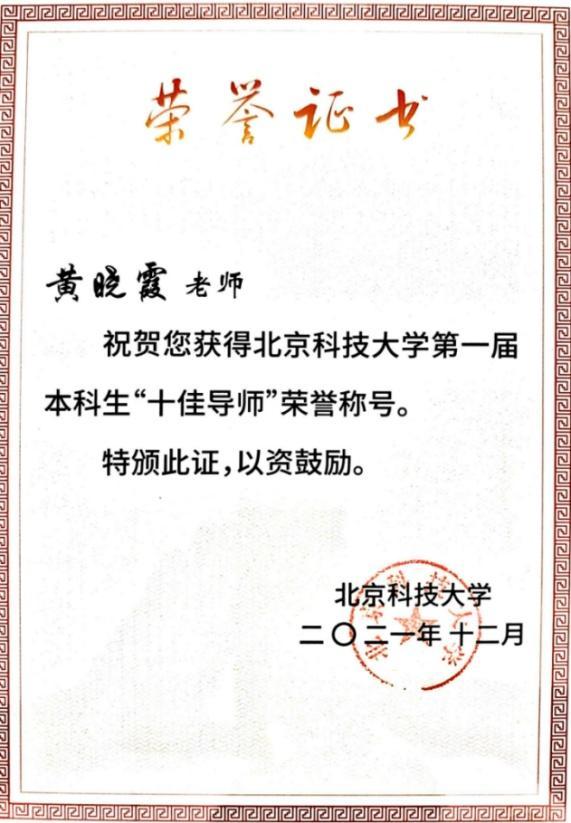 1、北京科技大学第一届本科生“十佳导师”,2021