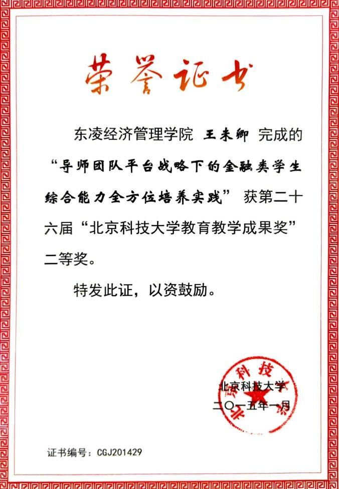 25、北京科技大学第26届教育教学成果奖二等奖,2015