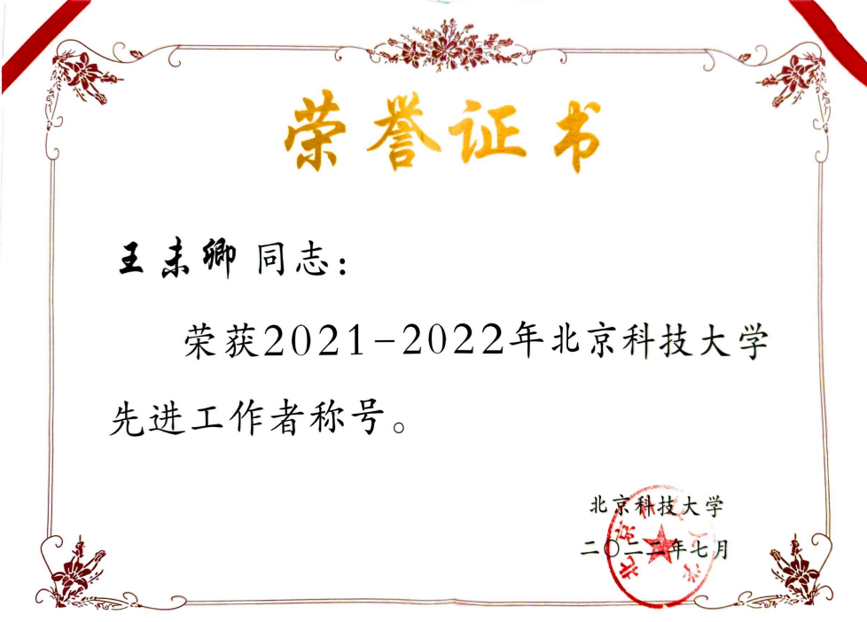 14、北京科技大学第十五届“校长奖章”优秀指导教师荣誉称号,2021