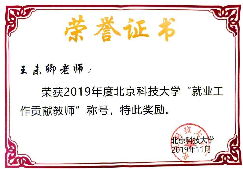 6、北京科技大学“就业工作贡献教师”称号,2019