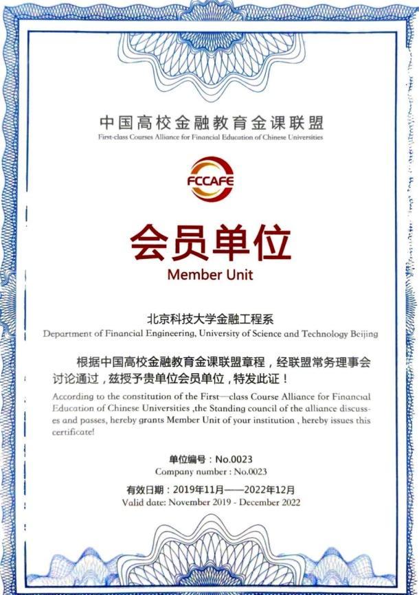 1、北京科技大学金融工程系:中国高校金融教育金课联盟会员单位,2019-2022