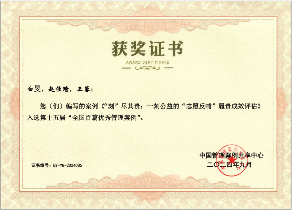 5、“刻”尽其责:一刻公益的“志愿反哺”履责成效评估,入选中国管理案例共享中心百优案例,2024