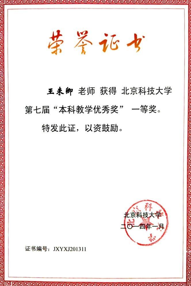 1、北京科技大学第十四届青年教师教学基本功大赛二等奖和最佳教学演示奖,2024