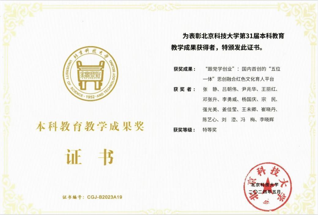 22、北京科技大学第31届本科教育教学成果奖特等奖,2024