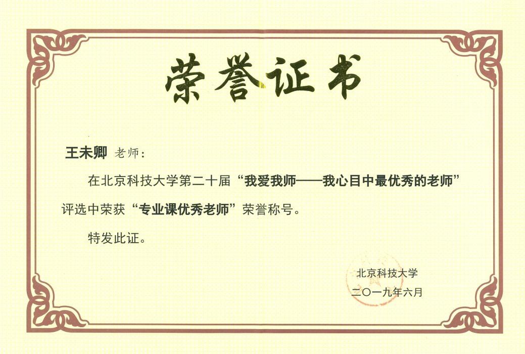 3、北京科技大学第二十届“我爱我师——我心目中最优秀的老师”称号,2019