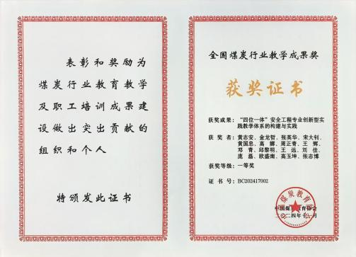 汲取现场典型案例充实专业教学内容,建立开放式多元化实习实践教学体系。成功申报相关重点教研项目2项和面上教研项目1项,出版实习教材,发表实习论文6篇,相关研究成果获得了26届校级教学奖二等奖,31届校级教学奖一等奖,2024年全国煤炭行业教学成果奖,全国煤炭行业教育教学研究优秀论文奖。