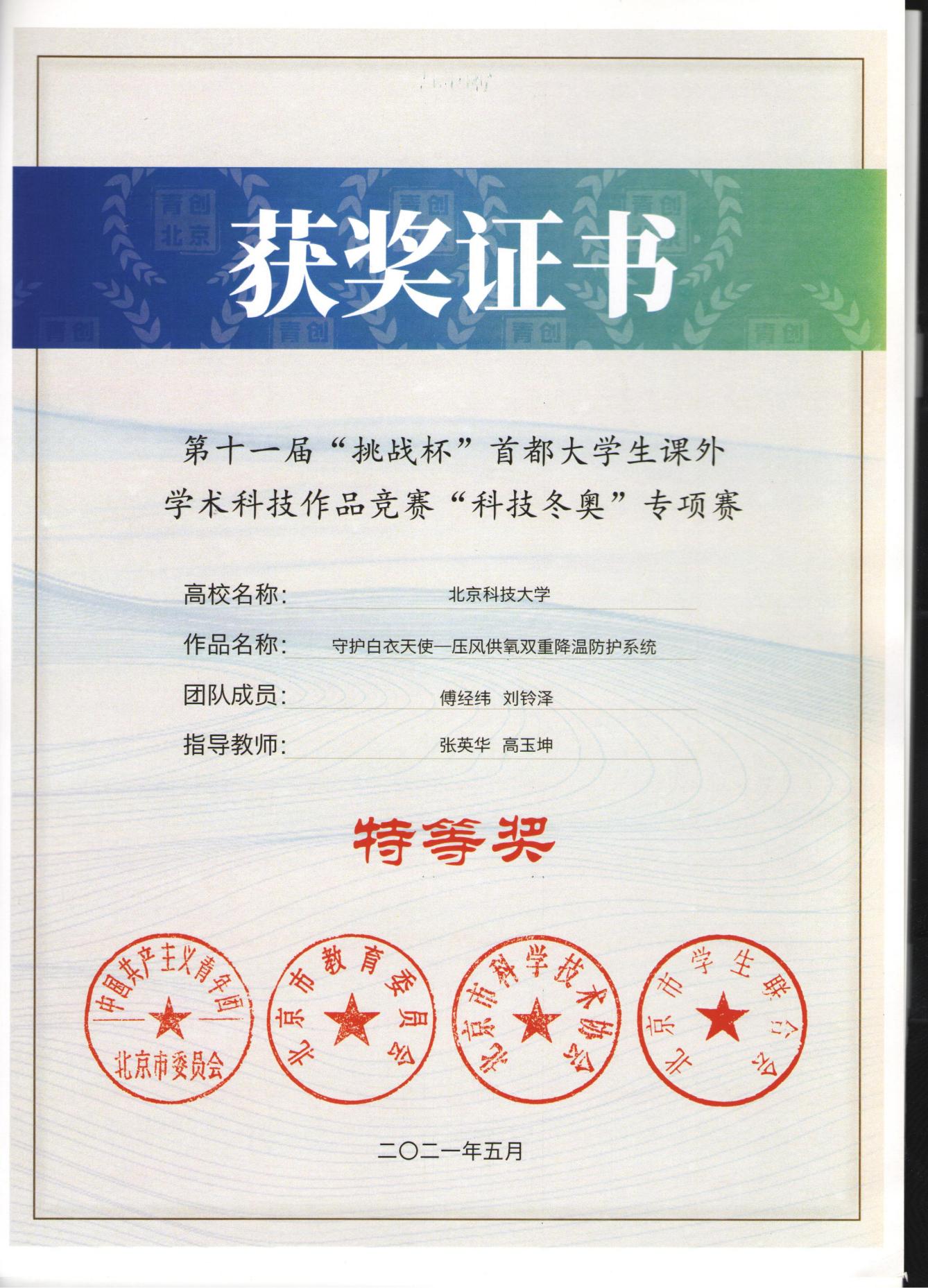 62.第十一届“挑战杯”首都大学生课外学术科技作品竞赛“科技冬奥”专项赛特等奖指导教师 张英华高玉坤