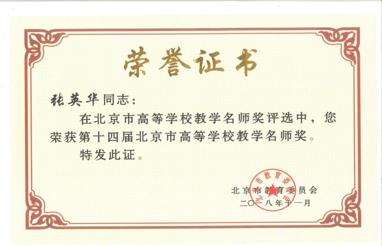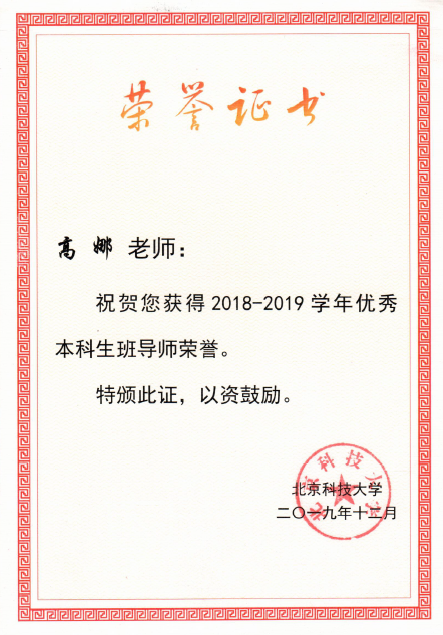 2019年北京市普通高校优秀本科毕业设计 (论文)优秀指导教师 |