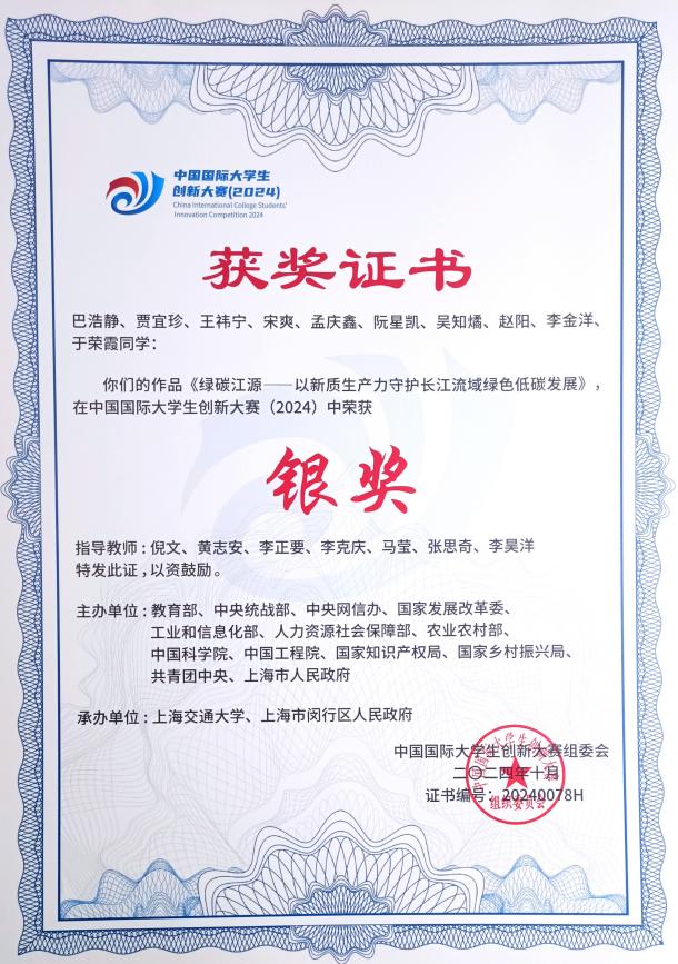 70. 中国国际大学生创新大赛(2024)银奖指导教师 黄志安