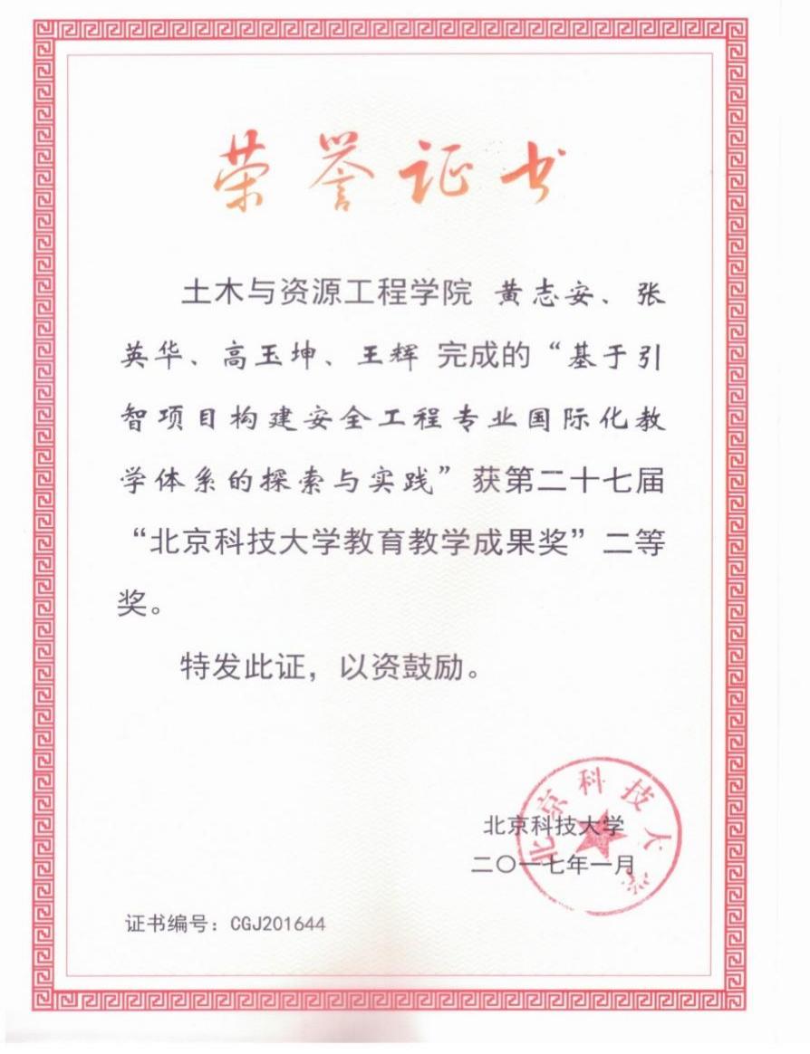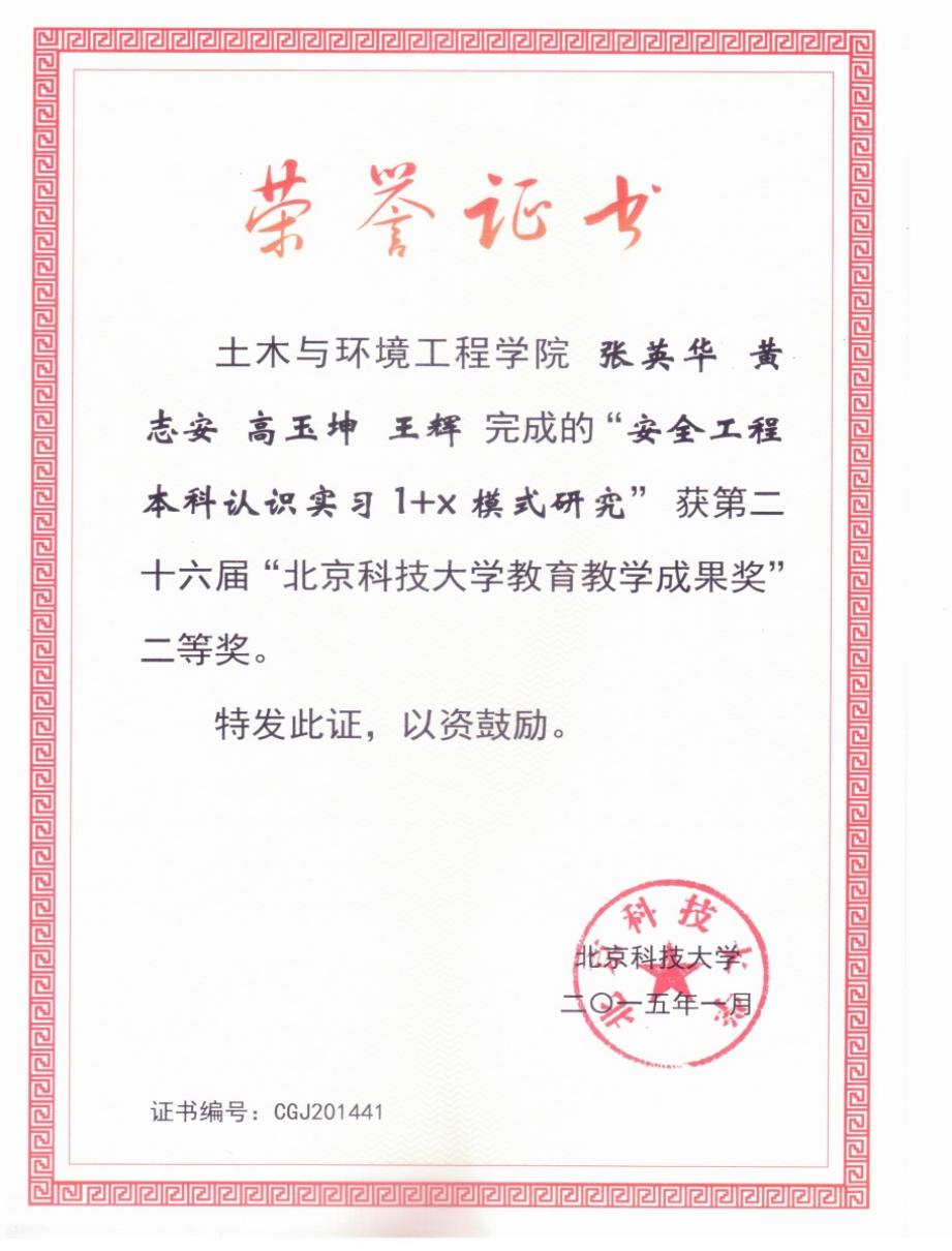 52.第27届北京科技大学教育教学成果奖二等奖 黄志安