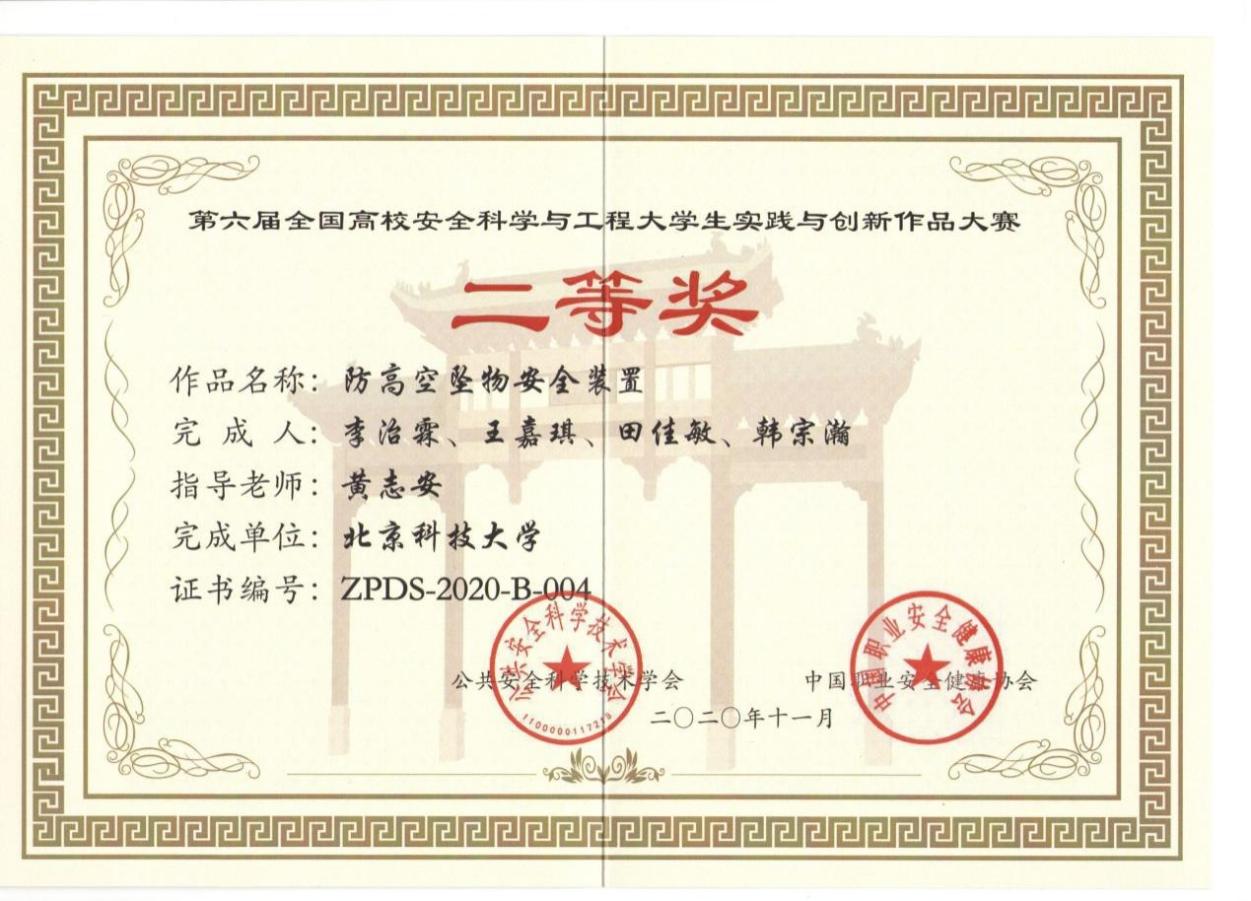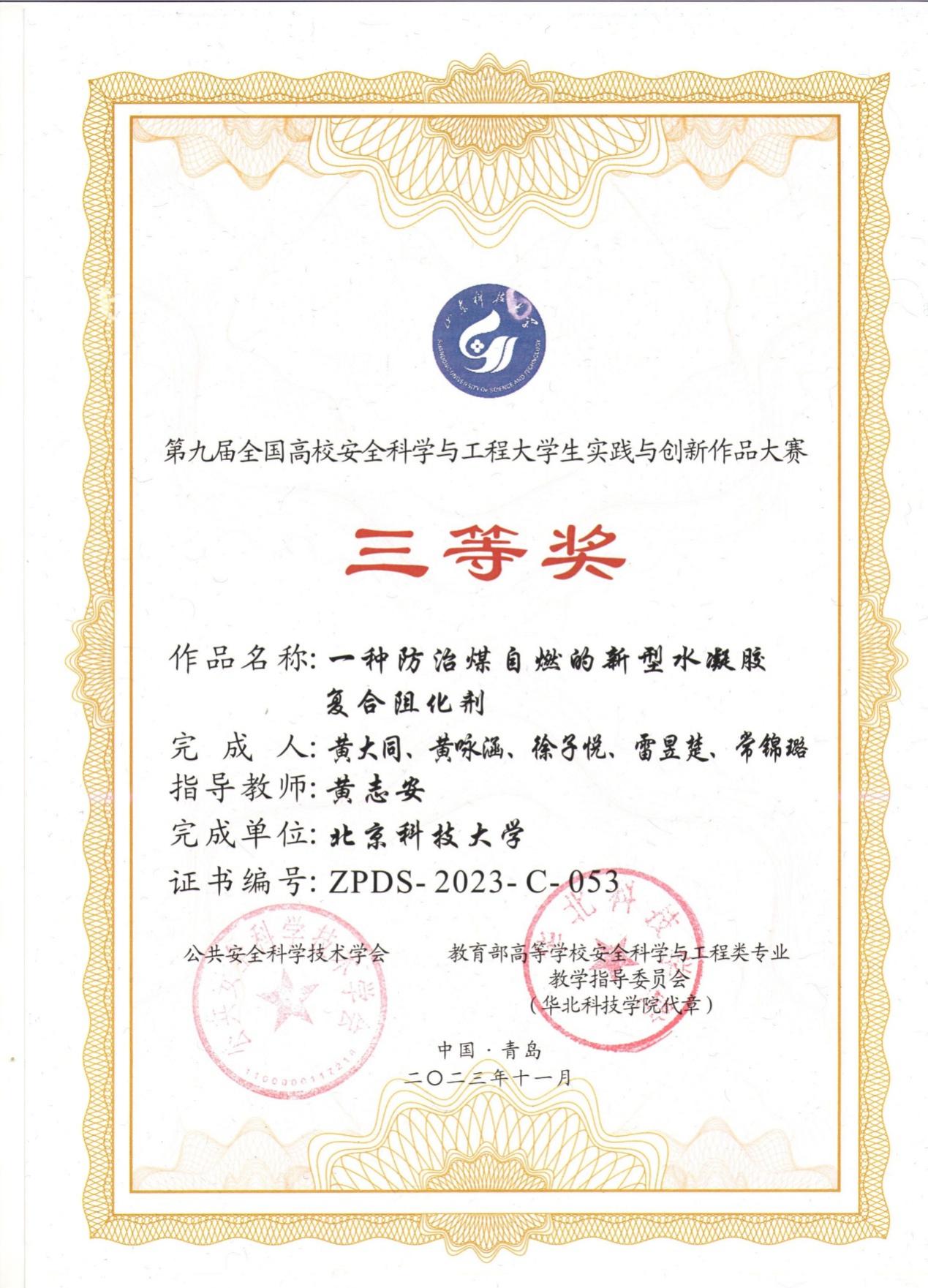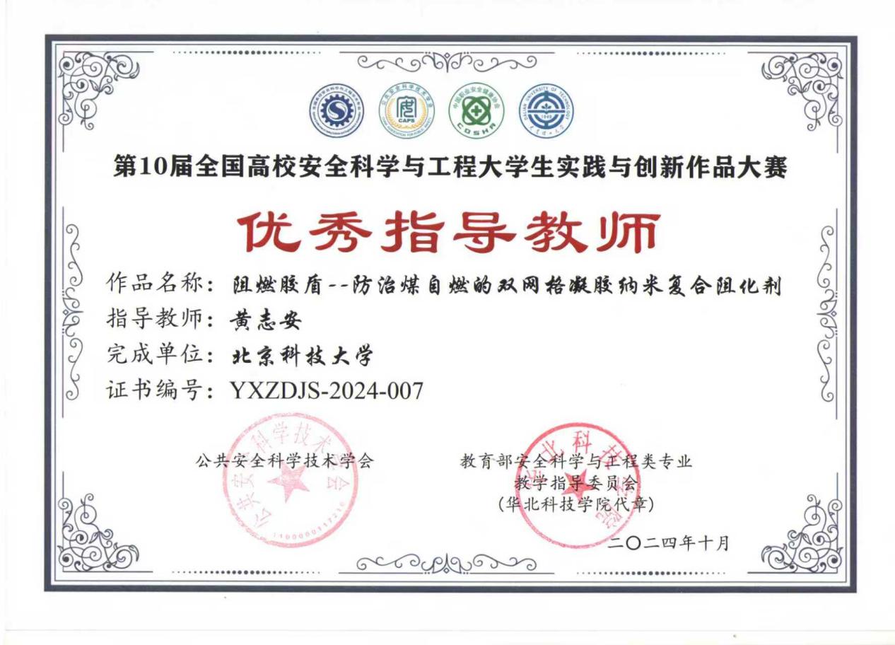 69. 第10届全国高校安全科学与工程大学生实践与创新作品大赛一等奖指导教师 黄志安