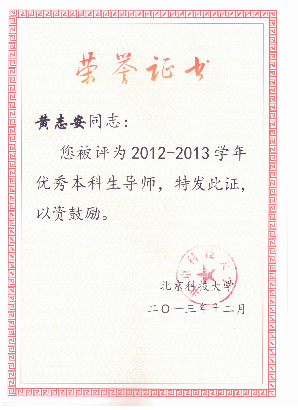 54.北京科技大学2012-2013学年优秀本科生导师 黄志安