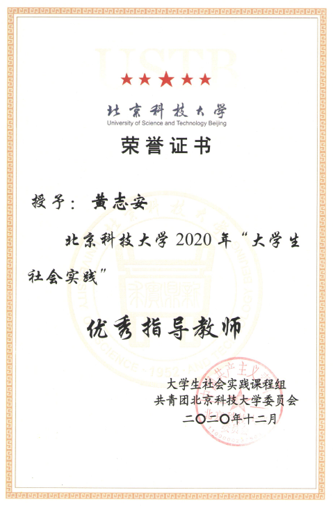 42.北京科技大学2020“大学生社会实践”优秀指导教师 黄志安