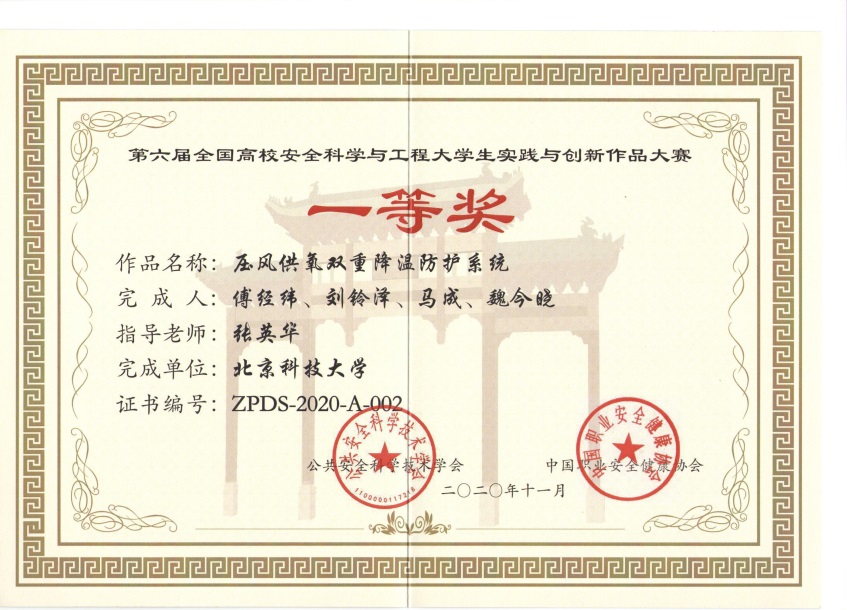 第10届全国高校安全科学与工程大学生实践与创新作品大赛一等奖指导教师 |