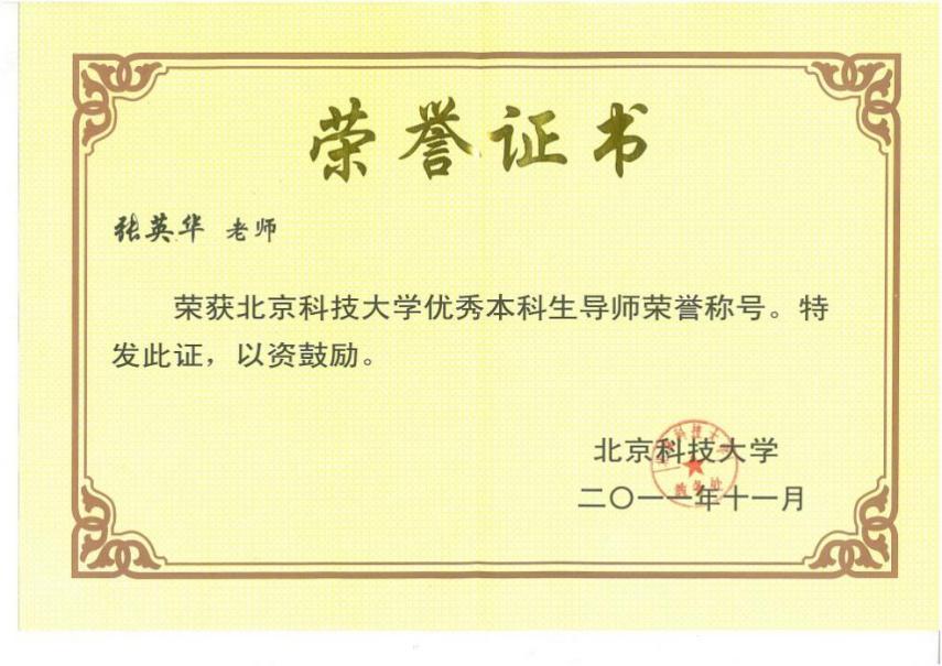 北京市级本科生技创新项目北京科技大学 一等奖指导教师 |