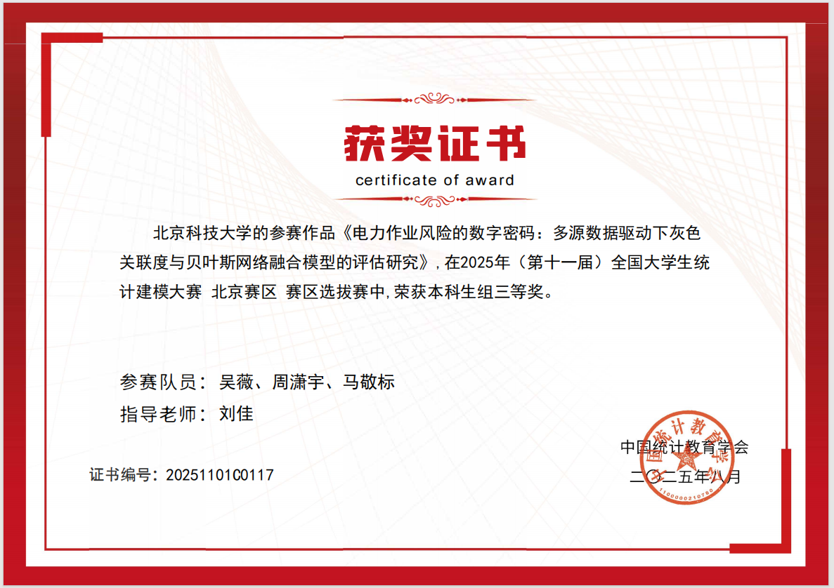 66.2025年(第十一届)全国大学生统计建模大赛北京赛区三等奖优秀指导教师 刘佳