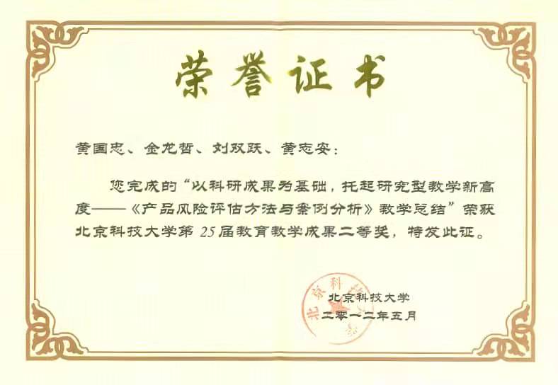 53.第25届北京科技大学教育教学成果奖二等奖 黄国忠