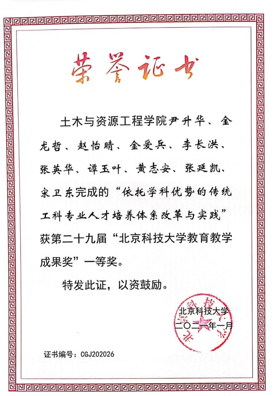 北京科技大学第31届本科教育教学成果奖一等奖 |
