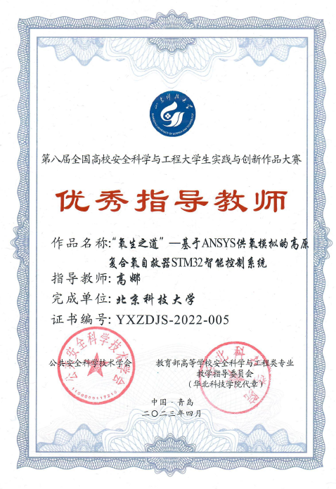 11.第八届全国高校安全科学与工程大学生实践与创新作品大赛一等奖指导教师 高娜