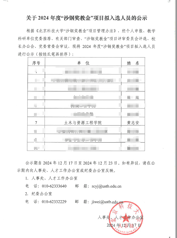 63.北京科技大学第31届本科教育教学成果奖一等奖 黄志安
