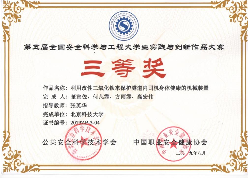 19.第四届全国安全科学与工程专业大学生实践与创新作品大赛三等奖指导教师 张英华
