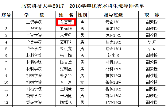 55.北京科技大学2017-2018学年优秀本科生班导师 黄志安