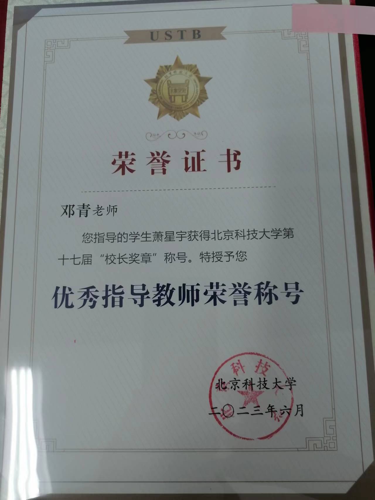 37.北京科技大学第十七届“校长奖章”优秀指导教师 邓青
