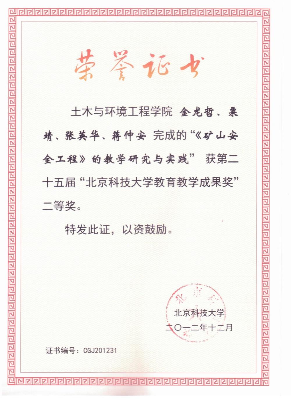 45.第25届北京科技大学教育教学成果奖二等奖 金龙哲