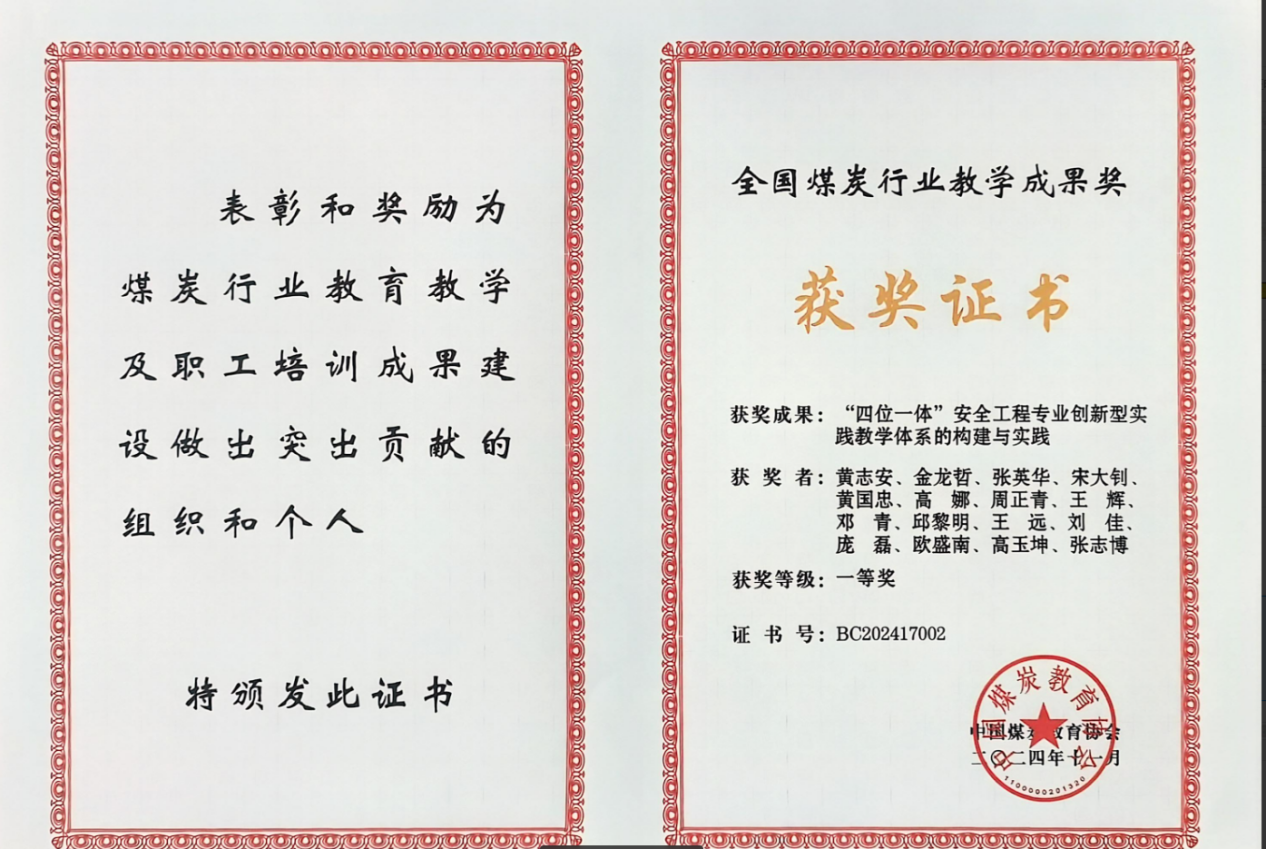 64 .全国煤炭行业教学成果奖一等奖 黄志安