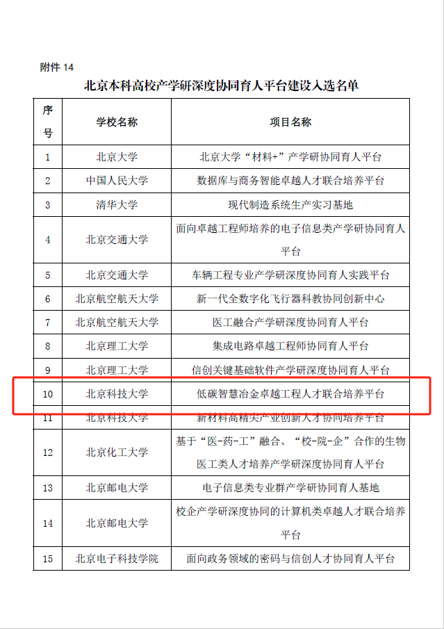 (4)2023年北京高校产学研深度协同育人平台-低碳智慧冶金卓越工程人才联合培养平台