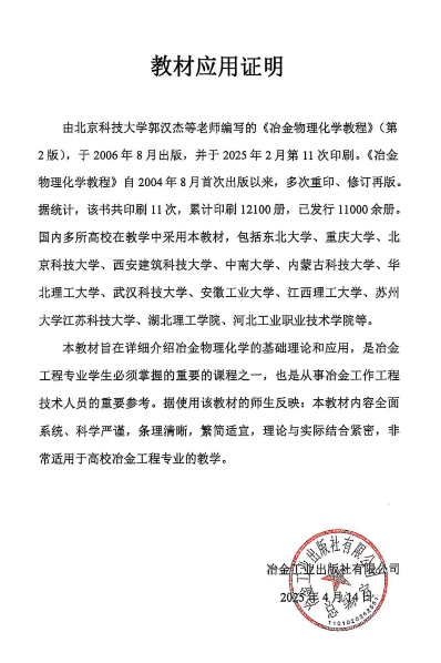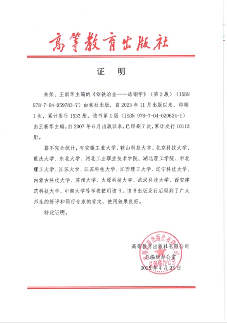 (5)《钢铁冶金学-炼钢学》(第2版)使用证明
